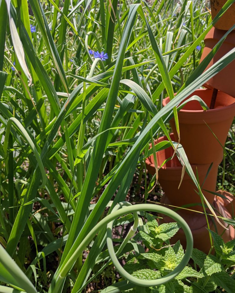 If you’re not growing garlic, you could find garlic scapes when they’re in season at your local farmers market.